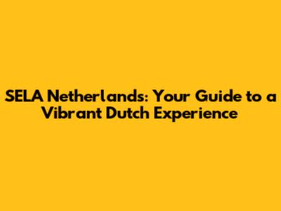 SELA Netherlands: Your Guide To A Vibrant Dutch Experience
