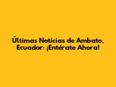 Últimas Noticias De Ambato, Ecuador: ¡Entérate Ahora!