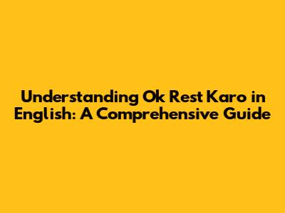 Understanding 'Ok Rest Karo' In English: A Comprehensive Guide